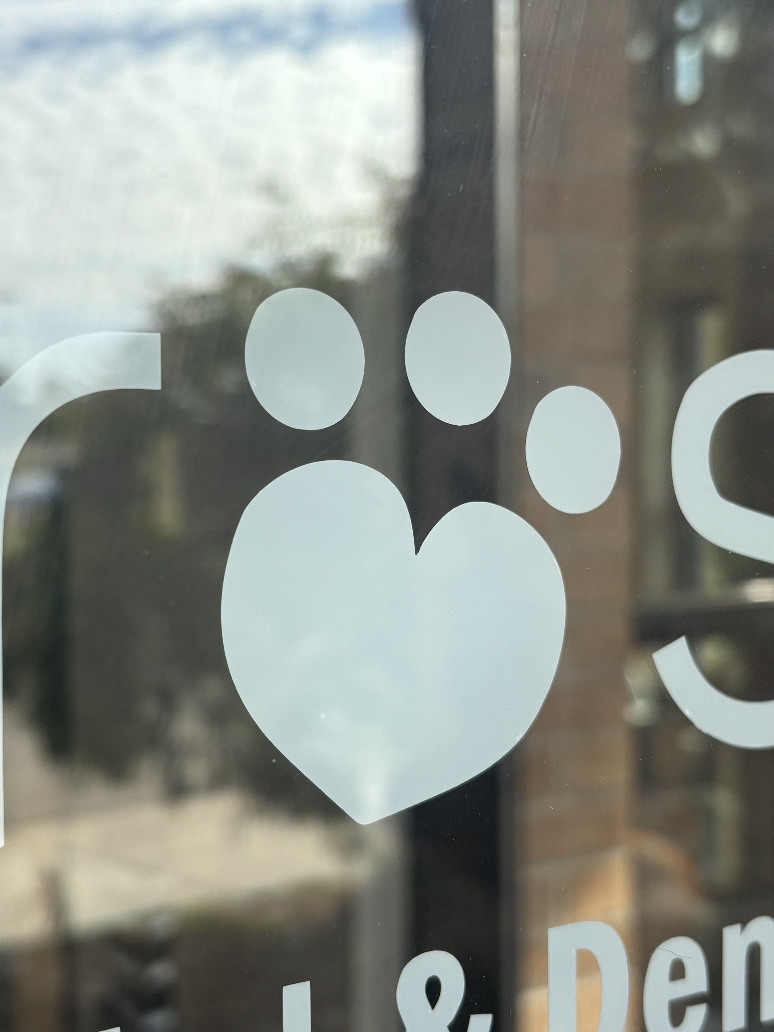 Replacing old and cracked door graphics can significantly enhance the visual appeal and brand identity. A fresh logo not only communicates professionalism but also reflects the values and services provided inside the doors, creating a clean, safe and welcoming atmosphere for all pet owners and their furry companions.